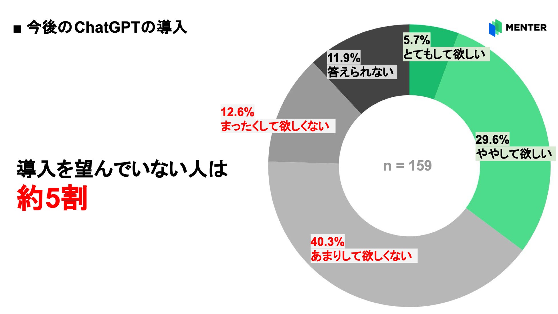 今後大学での導入を希望する人が「35.3%」いる一方、望んでない人は「52.9%」と否定派が多い結果でした。