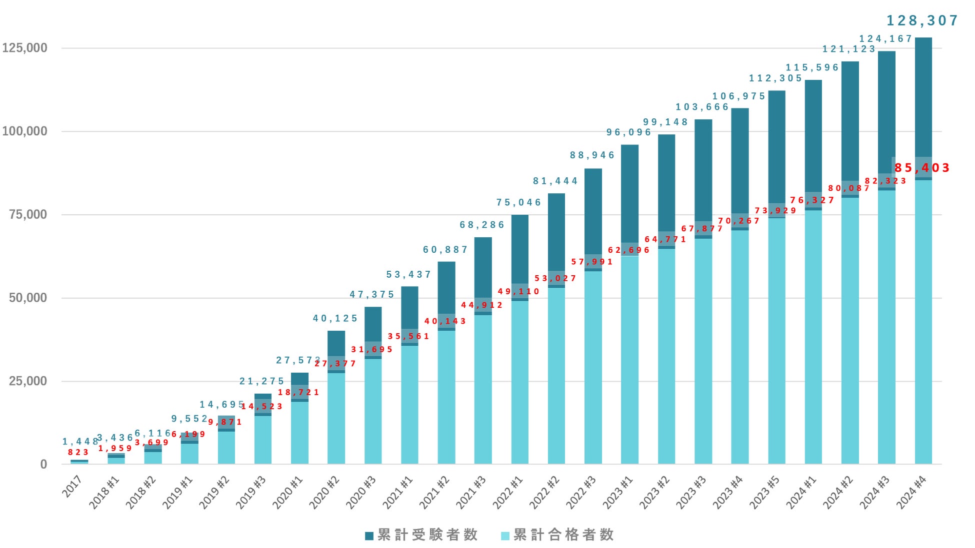 これにより、G検定の累計受験者数は128,307名、累計合格者数は85,403名になりました。