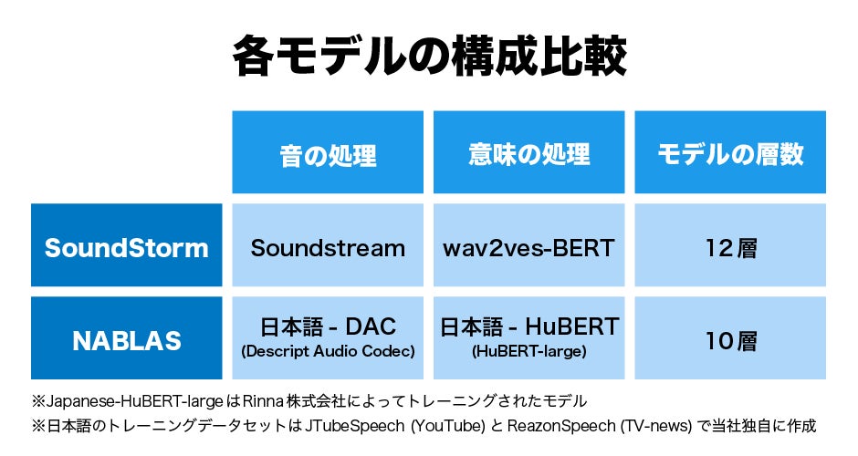 AI総合研究所として活動するNABLAS株式会社 (本社 : 東京都文京区本郷、 代表取締役 所長 : 中山 浩太郎、 以下「当社」)は、Google社が開発した音声生成モデル「SoundStorm」の構造をベースとして、日本語に対応した超高速な音声生成モデルを開発しました。本モデルは、数秒のデータを用いて瞬時に日本語の音声生成が可能です。当社独自の日本語データセットを用いてモデルの学習を行い、自然な日本語での音声生成を実現しました。本技術により将来的には医療分野における発話困難者への支援や、カスタマーサポートにおける感情的な音声のリアルタイムな声色調整、エンターテインメント分野での音声生成活用など幅広い分野での応用が期待できます。(PRTIMES)
