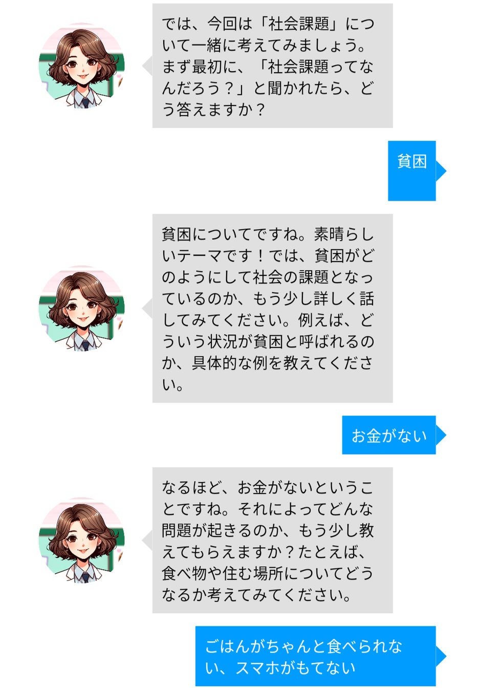 の3つの段階に応じて児童に問いかけ、さらなる思考を促すツールです。本アプリは、児童の自己表現力や思考力を向上させる革新的なアプローチを提供しています。