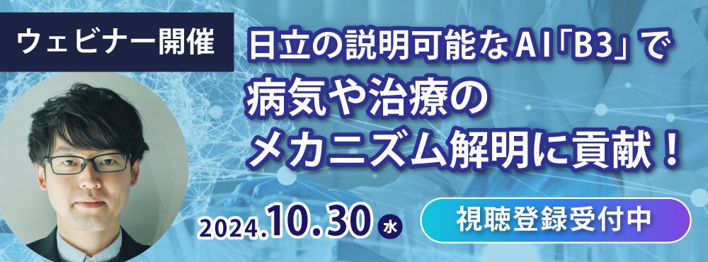 セミナー名 | 日立の説明可能なAI「B3」で病気や治療のメカニズム解明に貢献! |