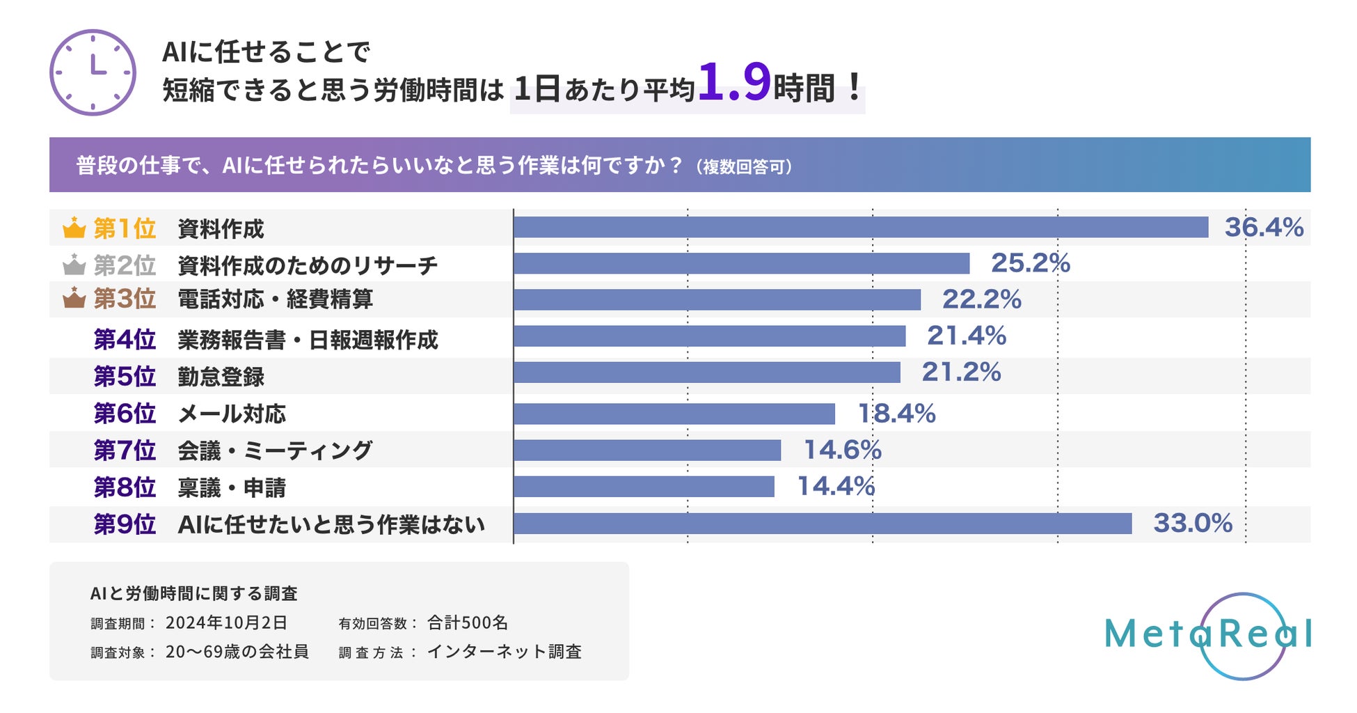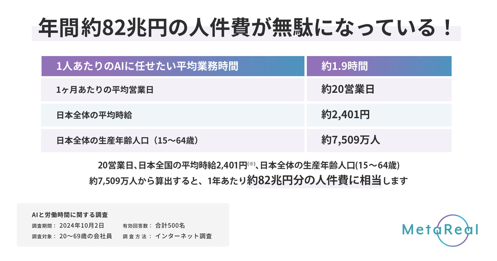 AIに任せられると思う業務は1日あたり1.9時間。日本全体の約82兆円分の人件費が浮く!<メタリアルAI白書>