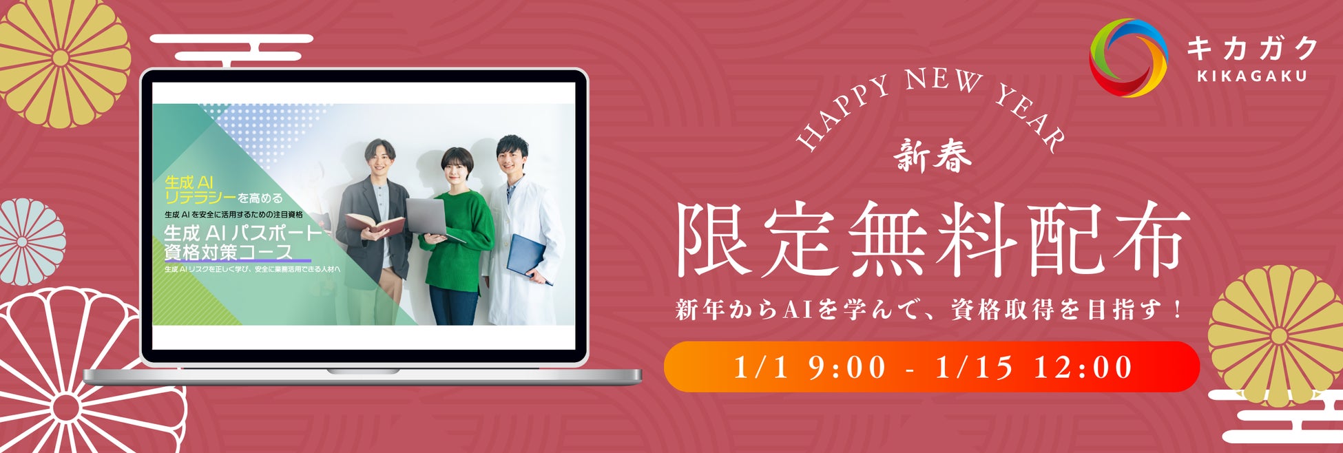 【新春特別企画】生成 AI パスポート資格対策コースを期間限定無料公開! e ラーニングサービス「キカガクラーニング」登録で無料付与