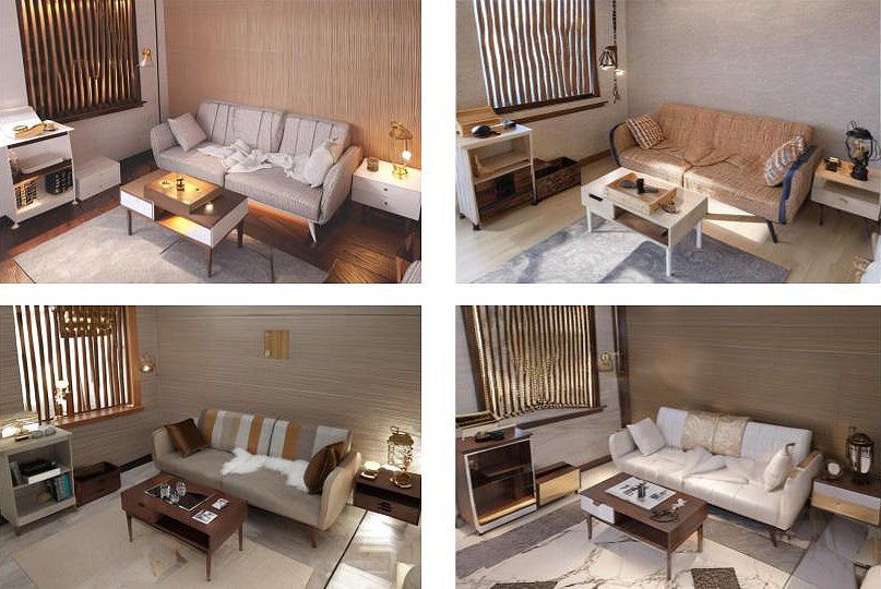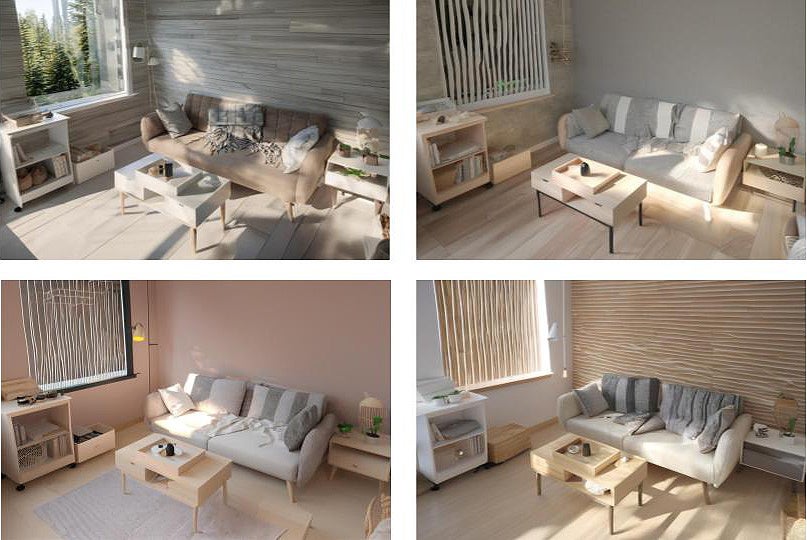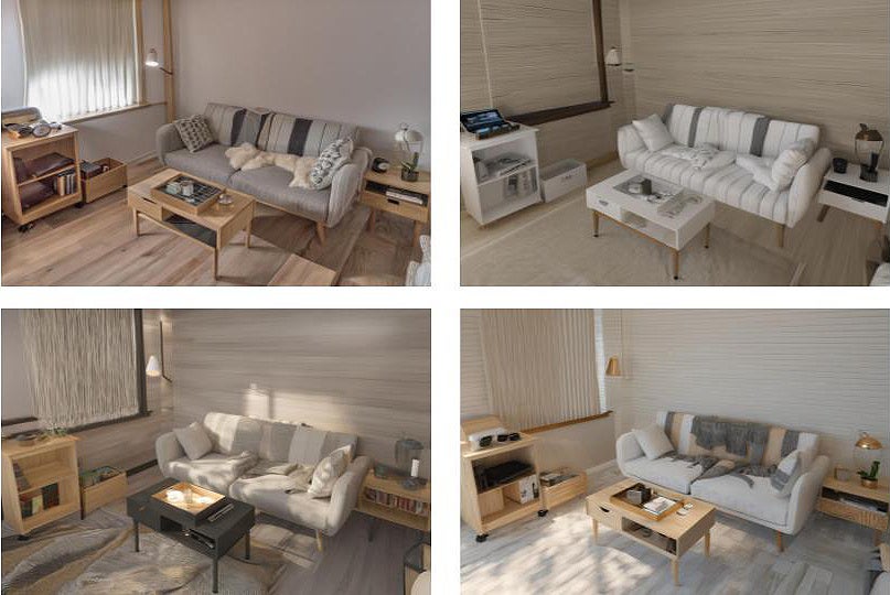 室内レイアウトやリノベーションプランの検討時に複数のパターンを作成。家具の配置、大きさ、色の違いなどをシミュレーションしながら比較できる。