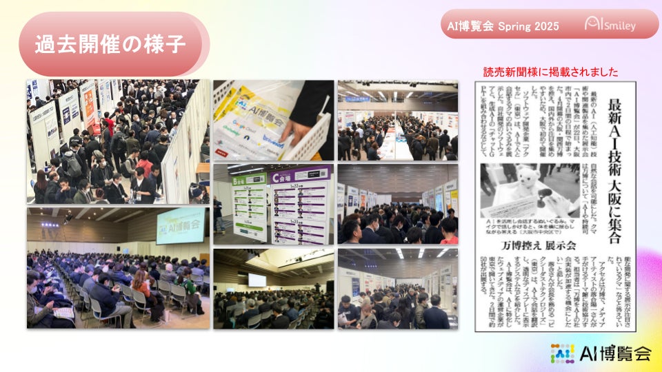 AIポータルメディア「AIsmiley」を運営するアイスマイリー(東京都渋谷区、代表取締役:板羽晃司)は、2025年3月27日(木)・28日(金)に「AI博覧会 Spring 2025」を開催します。(PRTIMES)
