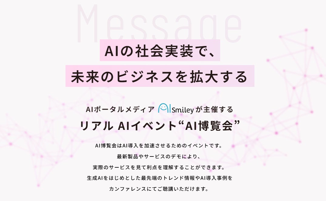 来場者は最新のAI技術やサービスを直接体験することができる他、AI技術の導入に関する疑問や課題を解決するための情報交換の場としても機能します。
